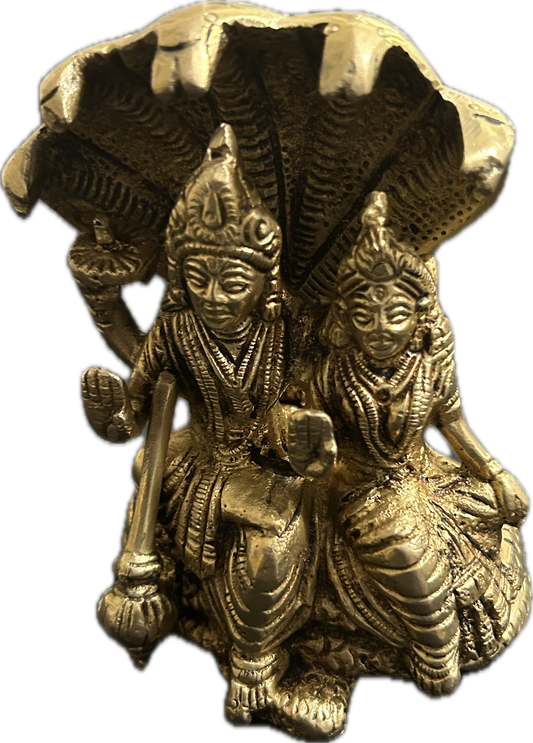 Brass Vishnu and Lakshmi Idol - Divine Couple on Sheshnag