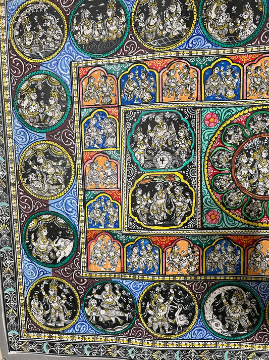 Handcrafted Pattachitra Painting - Lord Krishna Leela Scenes 36" x 27"